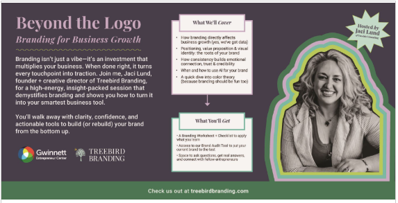 Beyond the Logo: Branding for Business Growth Branding is more than just a logo—it’s the engine behind your business growth. Join branding expert Jaci Lund, founder and creative director of Treebird Branding, for a high-energy, insight-rich 90-minute workshop designed to demystify branding and empower you to build a brand that doesn’t just look good—it works. This session blends real-world experience, proven frameworks, and just the right amount of fun to help you turn branding into one of your smartest business tools. Whether you’re starting fresh or ready to evolve your existing brand, you’ll leave with the tools, clarity, and confidence to grow your business from the inside out. Top Takeaways: - Understand how branding directly drives business growth (with real data to back it up)
